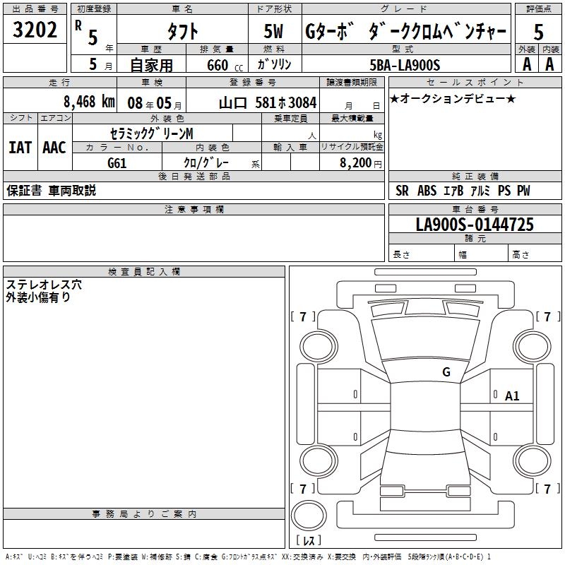 DAIHATSU TAFT G TURBO DARK CHROME BENCH .- - лот 3202