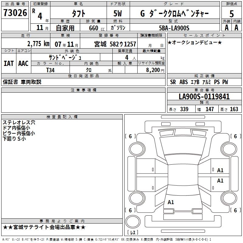 DAIHATSU TAFT G DARK CHROME BENCH .- - лот 73026