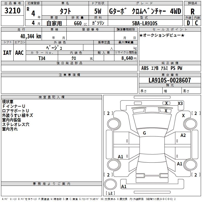 DAIHATSU TAFT G TURBO CHROME BENCH .-4WD - лот 3210