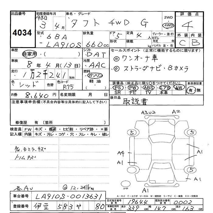 DAIHATSU TAFT 4WD G - лот 4034