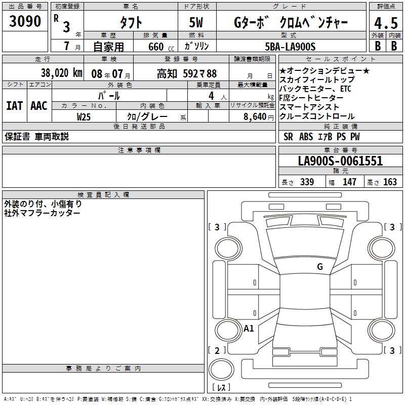 DAIHATSU TAFT G TURBO CHROME BENCH .- - лот 3090