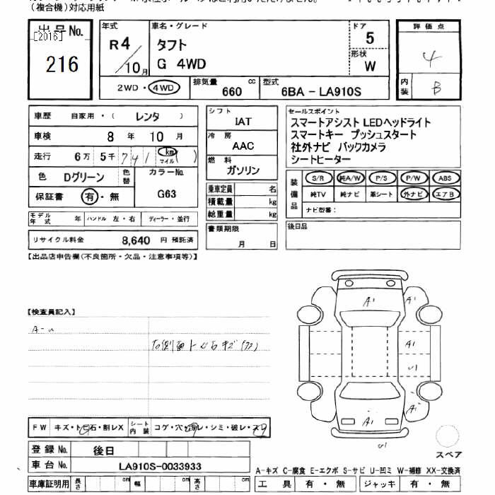 DAIHATSU TAFT 4WD G - лот 216