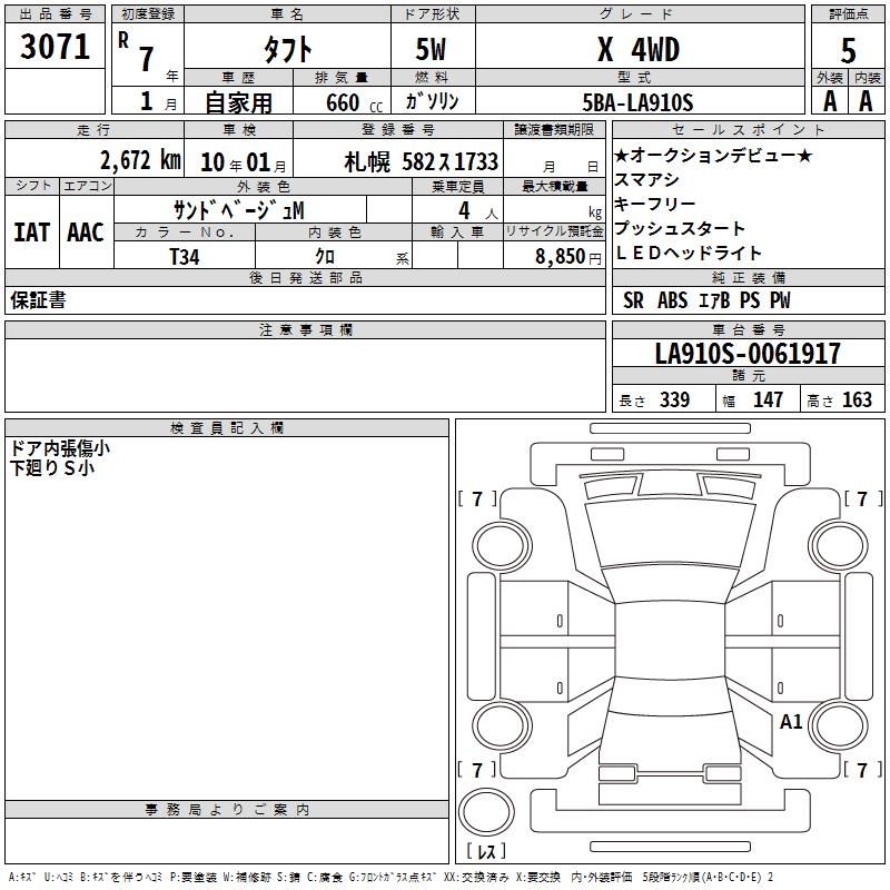 DAIHATSU TAFT X 4WD - лот 3071