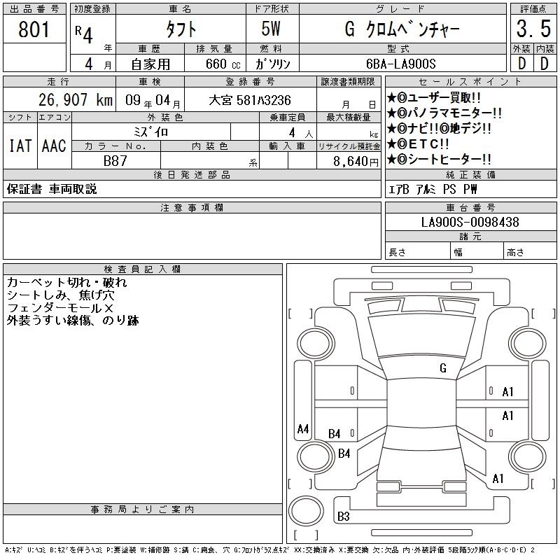 DAIHATSU TAFT - лот 801