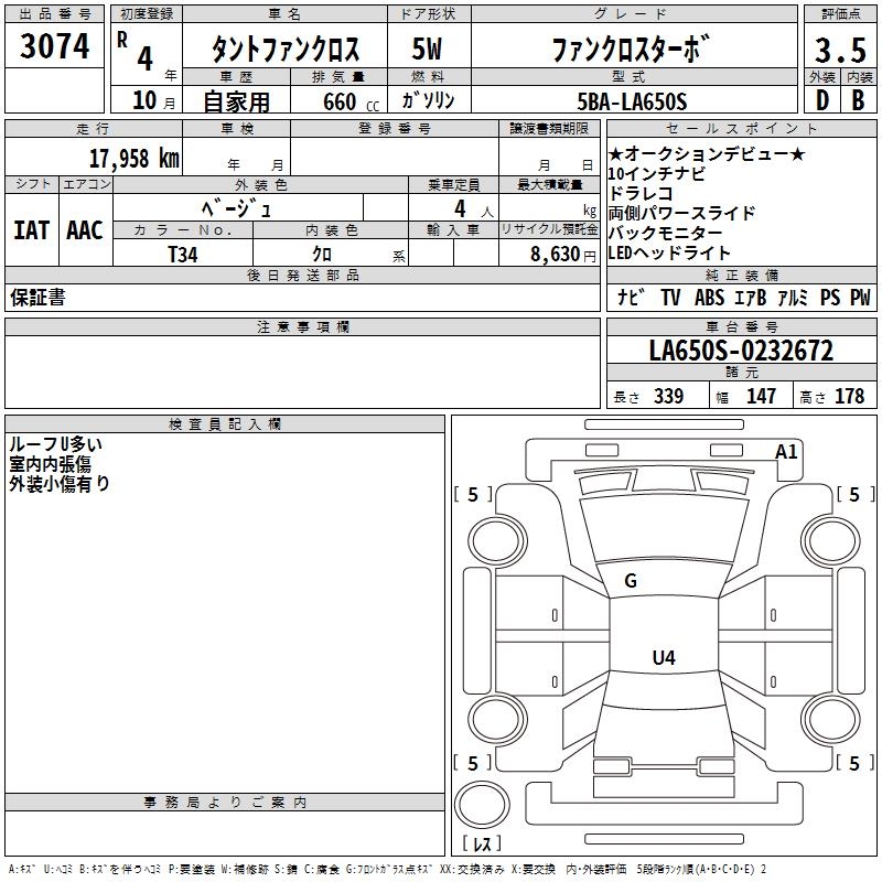 DAIHATSU TANTO FUN CROSS FAN CROSS TURBO - лот 3074