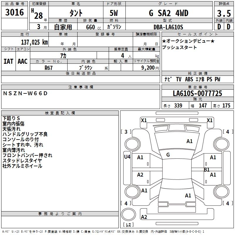 DAIHATSU TANTO G SA2 4WD - лот 3016