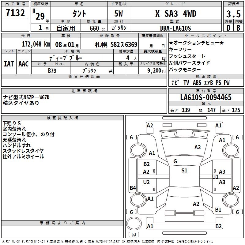 DAIHATSU TANTO X SA3 4WD - лот 7132