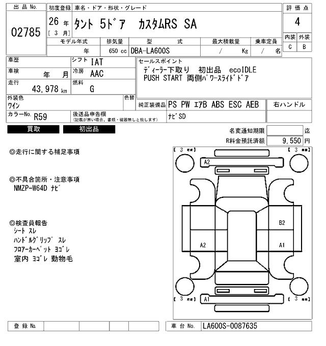 DAIHATSU TANTO CUSTOM RS SA - лот 2785