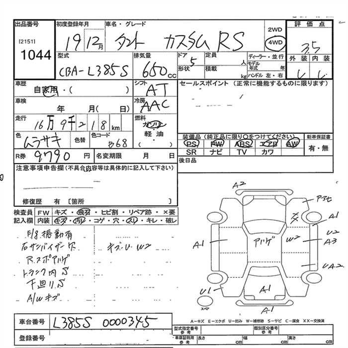 DAIHATSU TANTO 4WD CUSTOM RS - лот 1044