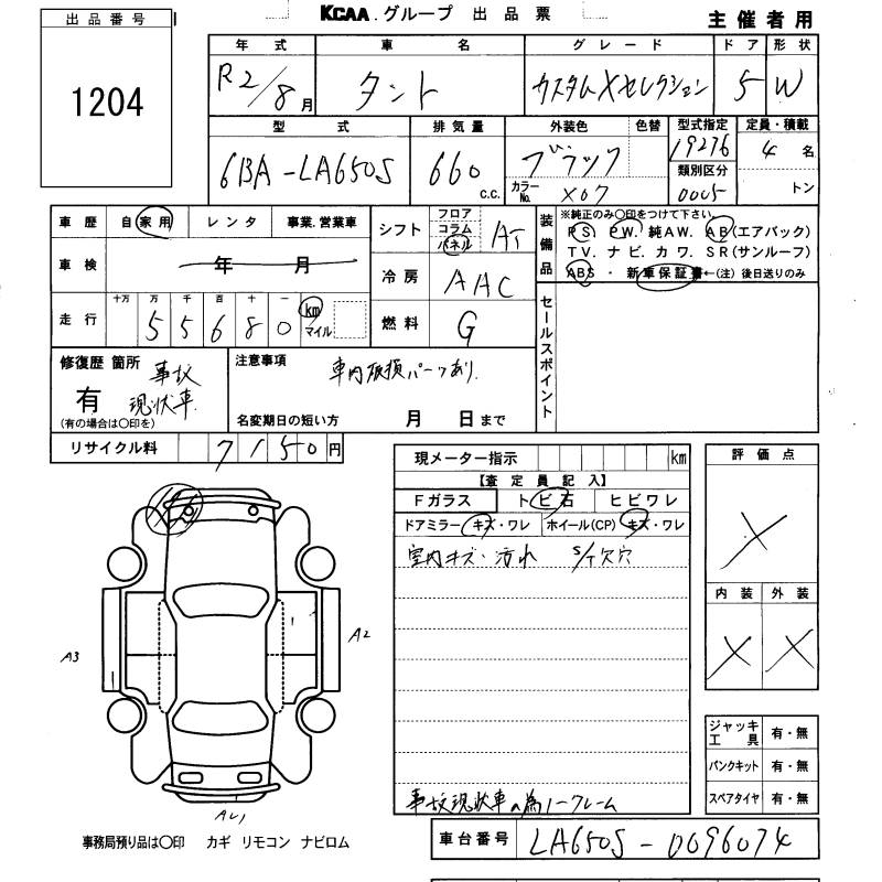 DAIHATSU TANTO CUSTOM X SELECTION - лот 1204
