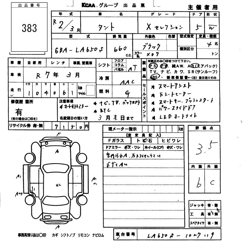 DAIHATSU TANTO X SELECTION - лот 383