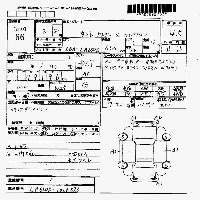 DAIHATSU TANTO CUSTOM X SELECTION - лот 66