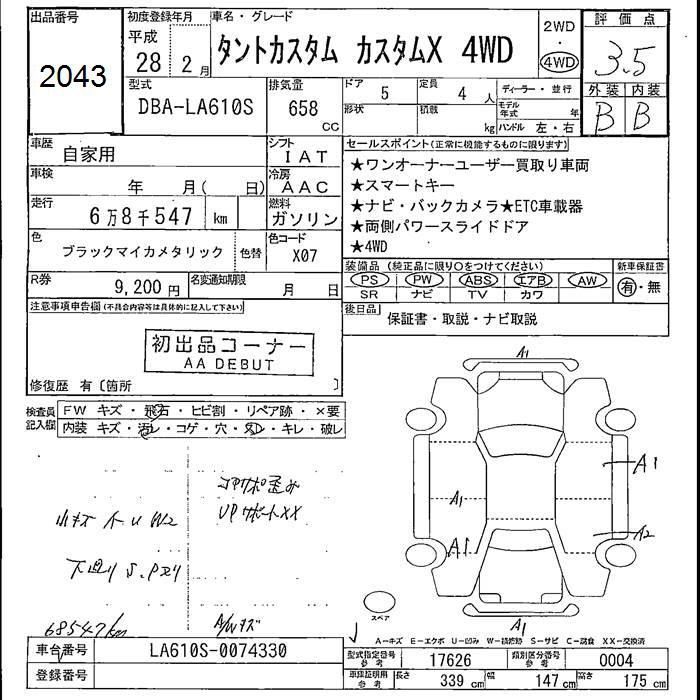 DAIHATSU TANTO 4WD CUSTOM X - лот 2043