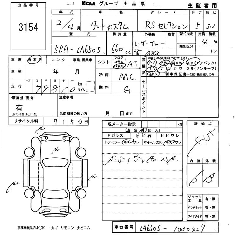 DAIHATSU TANTO CUSTOM RS SELECTION - лот 3154