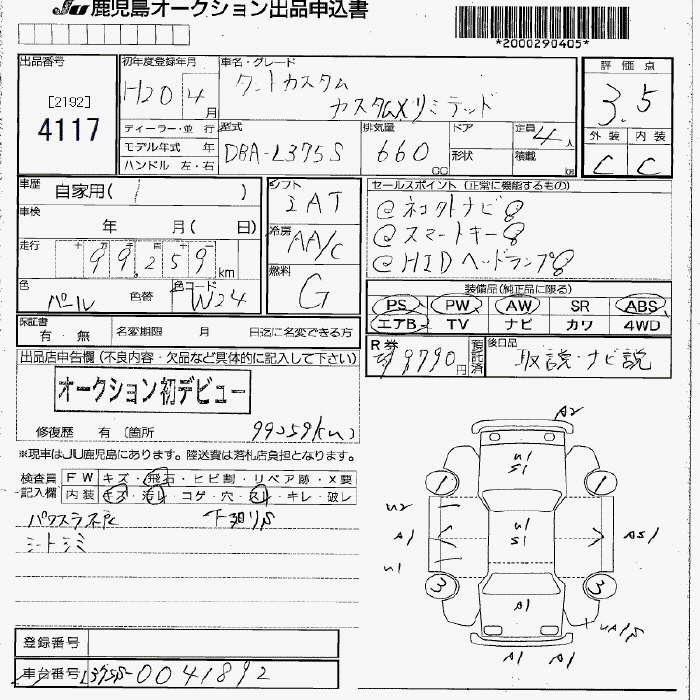 DAIHATSU TANTO CUSTOM X LTD - лот 4117