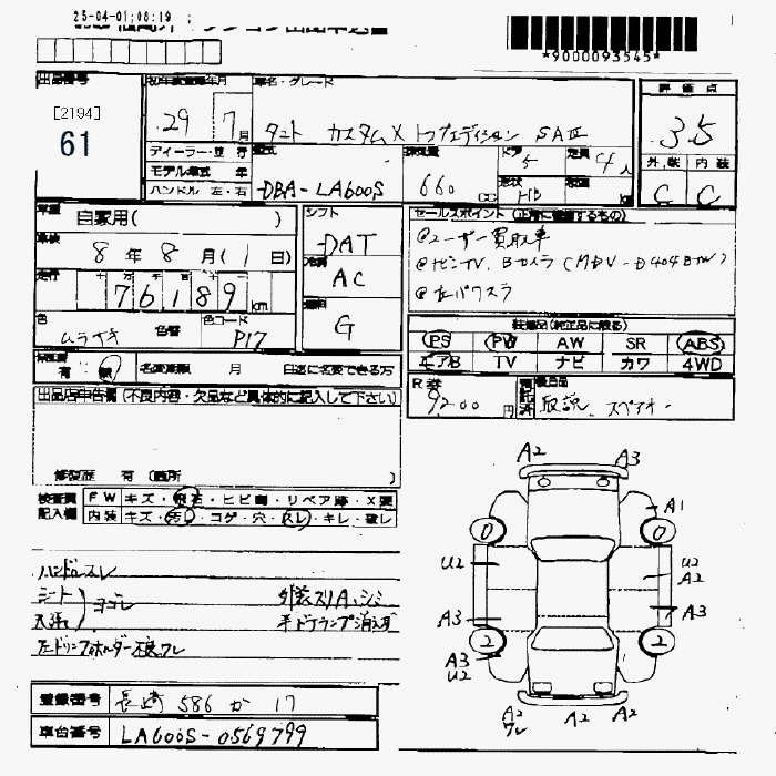 Все аукционы DAIHATSU TANTO