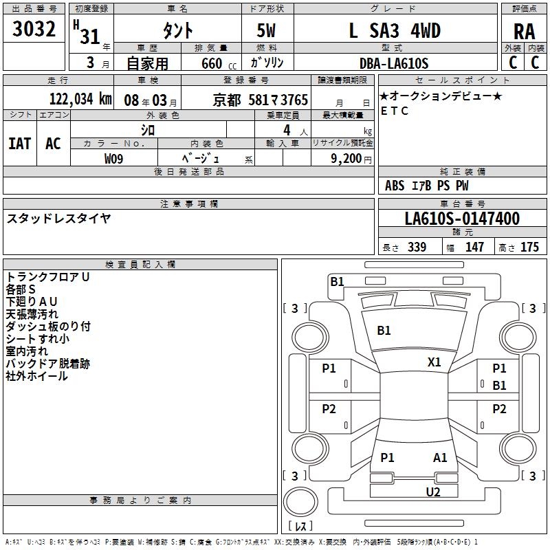DAIHATSU TANTO L SA3 4WD - лот 3032