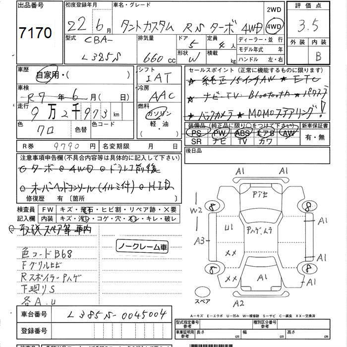 DAIHATSU TANTO 4WD CUSTOM RS TURBO - лот 7170