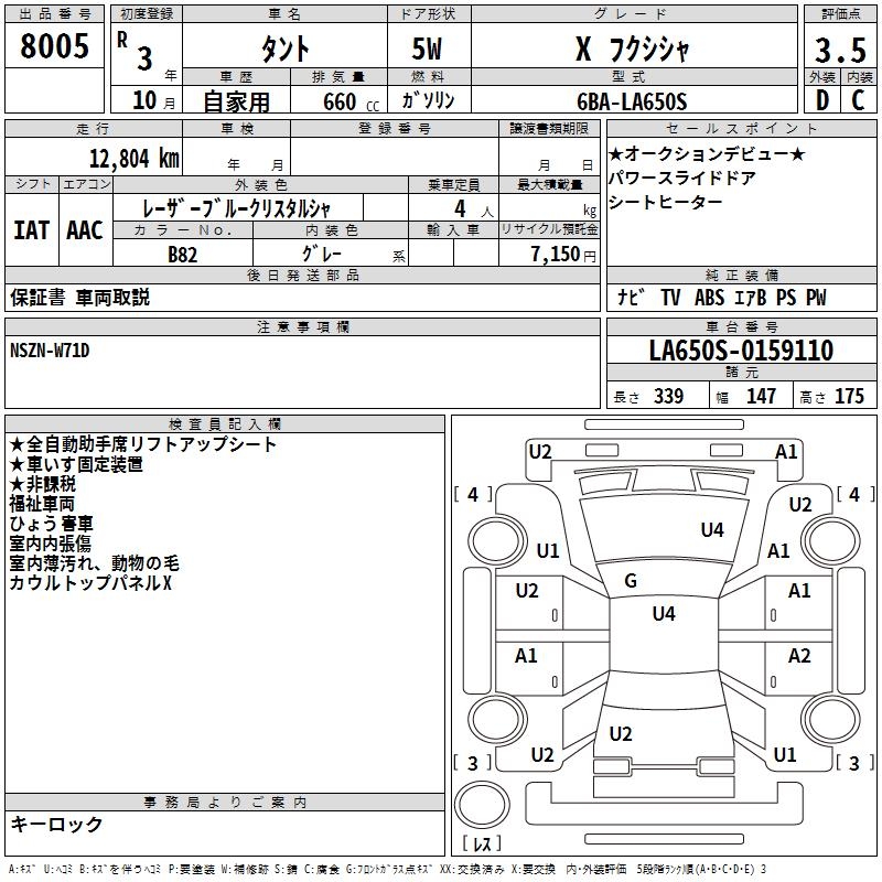 DAIHATSU TANTO X WELLFARE CAR - лот 8005