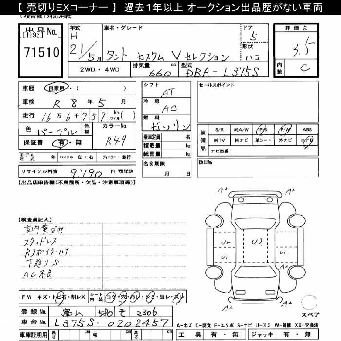 DAIHATSU TANTO CUSTOM V SELECTION - лот 71510