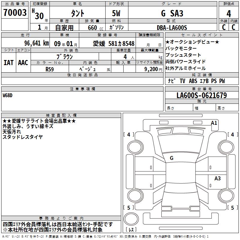 DAIHATSU TANTO G SA3 - лот 70003