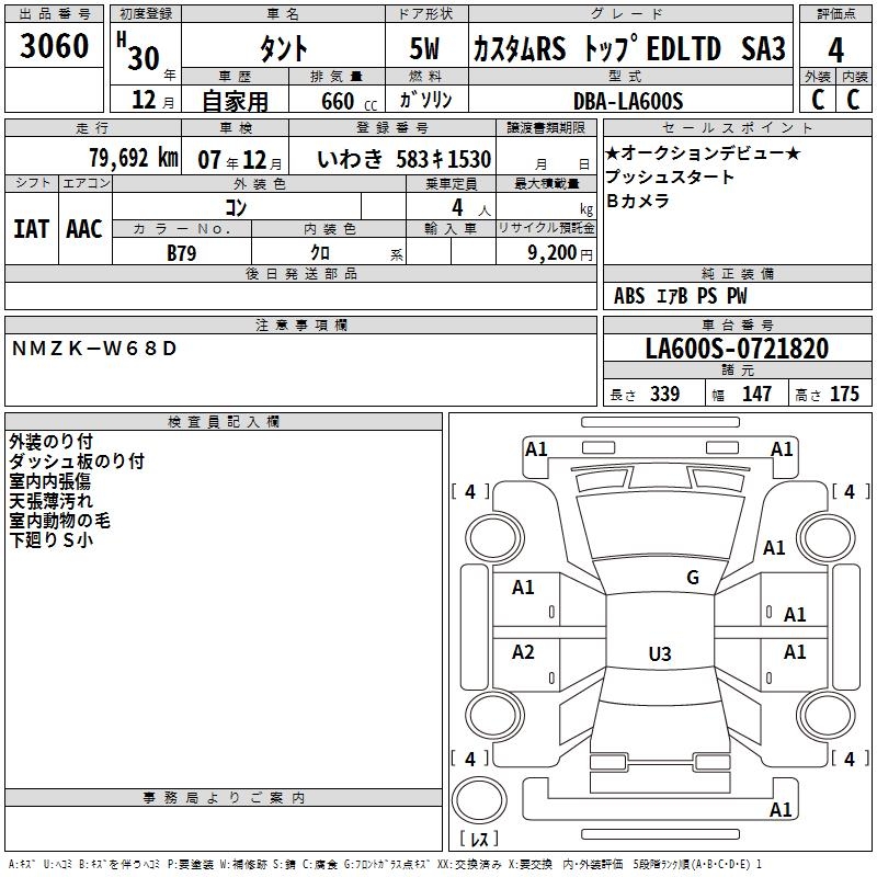 DAIHATSU TANTO CUSTOM RS TOP EDLTD SA3 - лот 3060