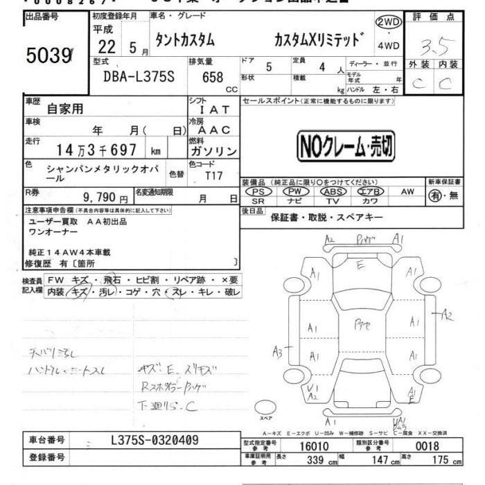 DAIHATSU TANTO CUSTOM X LTD - лот 5039