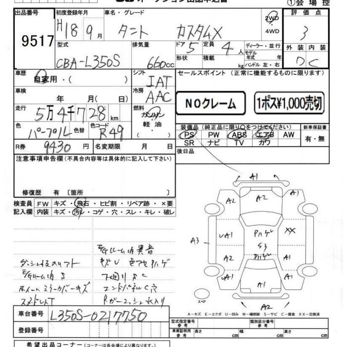 DAIHATSU TANTO CUSTOM X - лот 9517