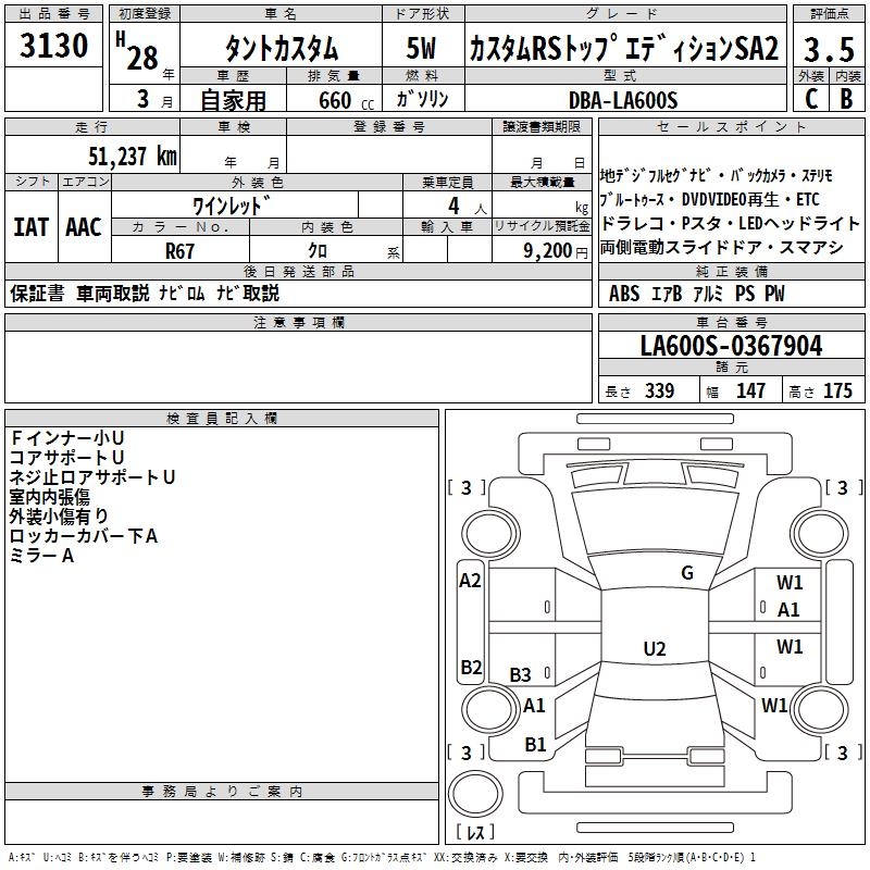 DAIHATSU TANTO CUSTOM RS TOP EDITION SA2 - лот 3130