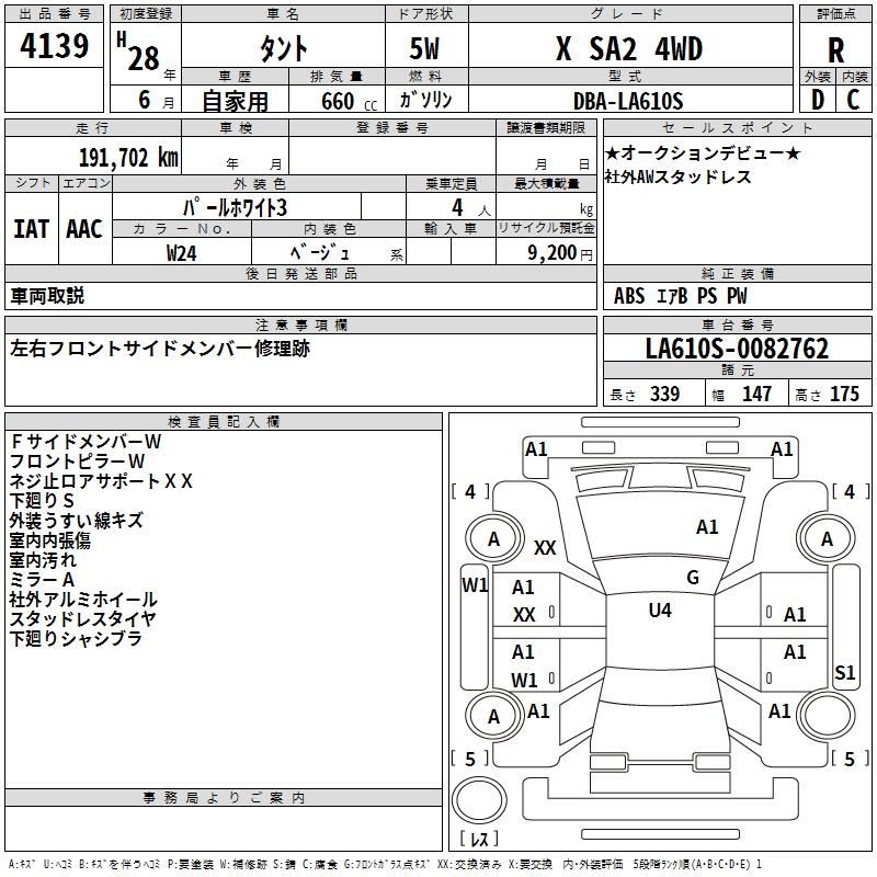 DAIHATSU TANTO X SA2 4WD - лот 4139
