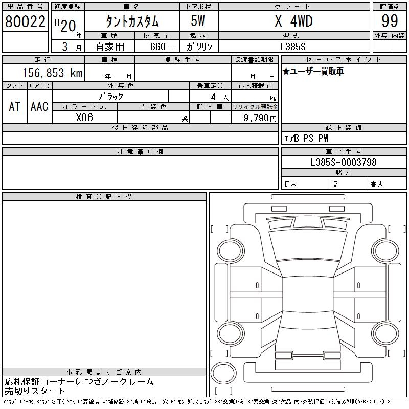 DAIHATSU TANTO X 4WD - лот 80022
