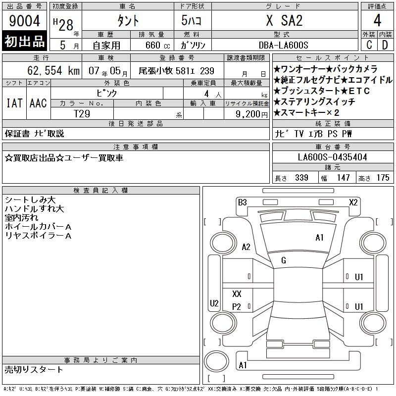 DAIHATSU TANTO X SA2 - лот 9004