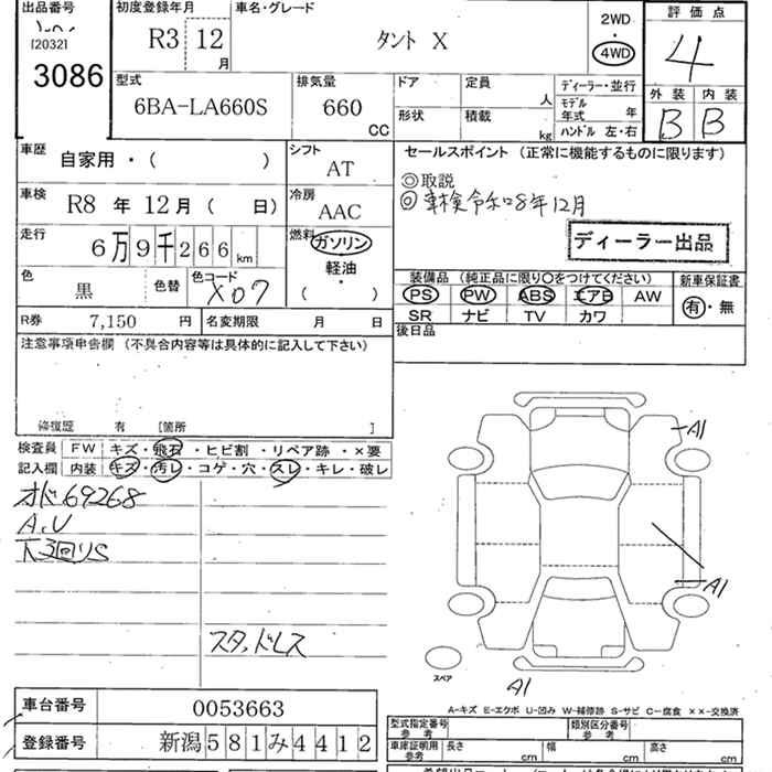 DAIHATSU TANTO 4WD X - лот 3086
