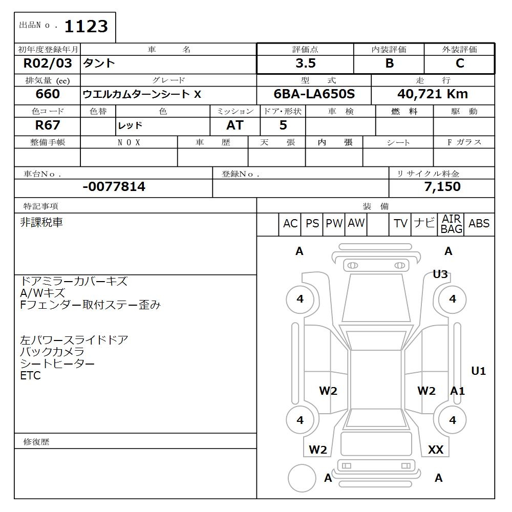 DAIHATSU TANTO WELCOME MANY -N SEAT X - лот 1123