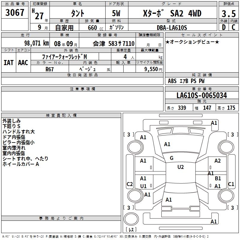 DAIHATSU TANTO X TURBO SA2 4WD - лот 3067