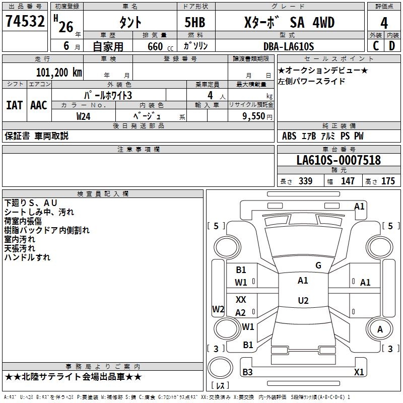 DAIHATSU TANTO X TURBO SA 4WD - лот 74532