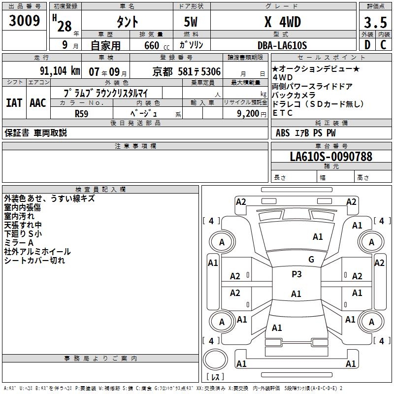 DAIHATSU TANTO X 4WD - лот 3009
