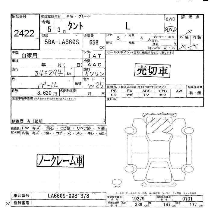 DAIHATSU TANTO 4WD L - лот 2422
