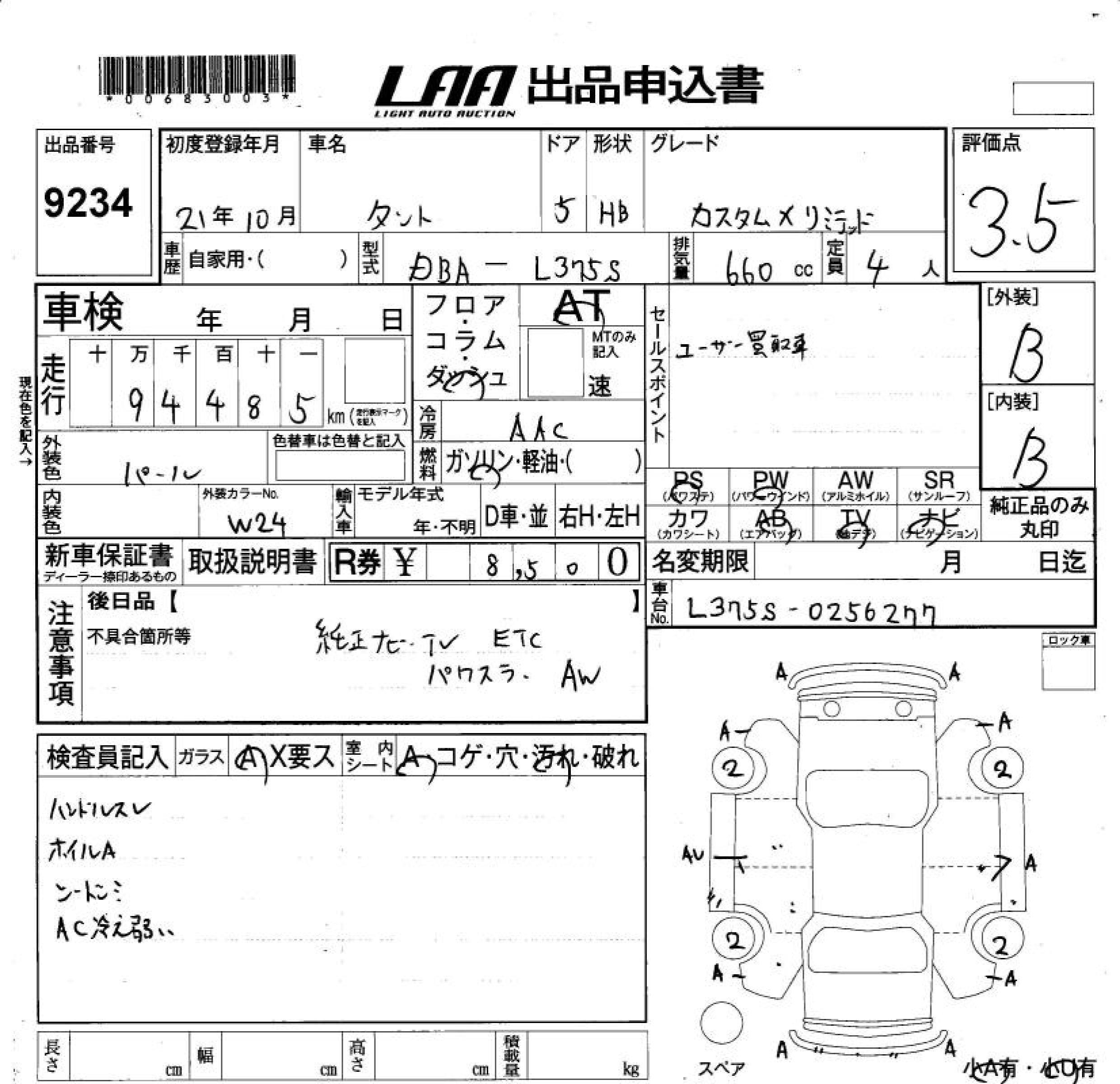 DAIHATSU TANTO CUSTOM X LIMITED - лот 9234