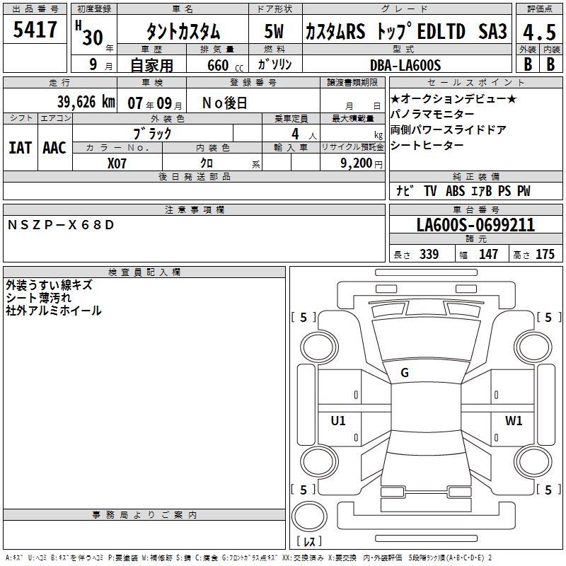 DAIHATSU TANTO CUSTOM RS TOP EDLTD SA3 - лот 5417