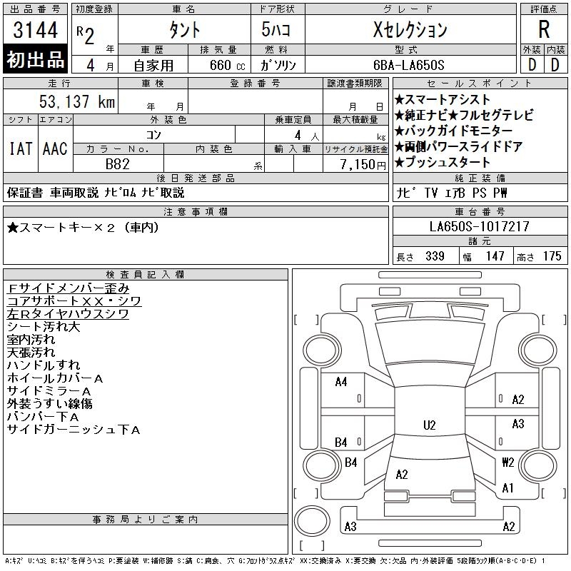 DAIHATSU TANTO X SELECTION - лот 3144
