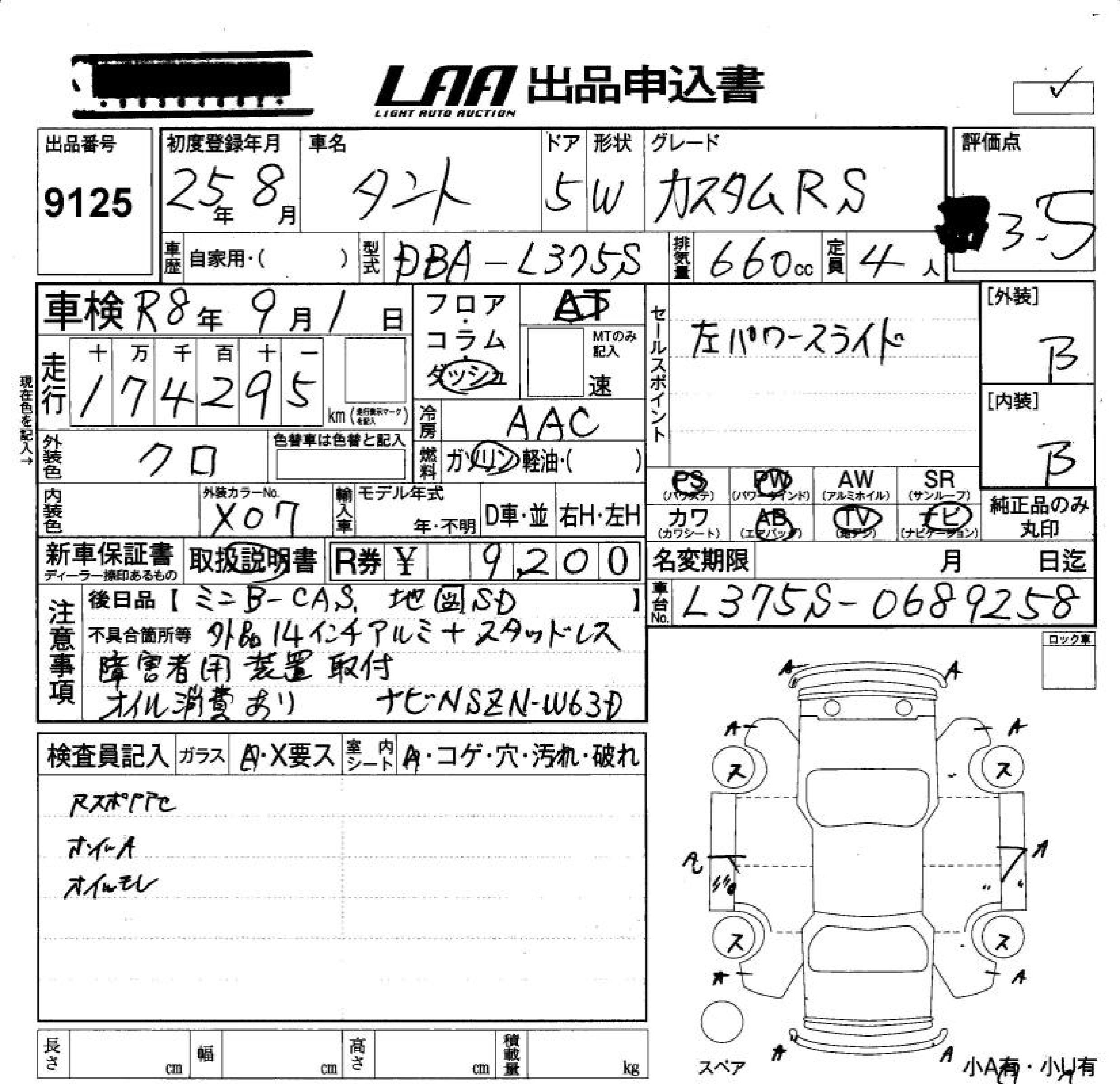 DAIHATSU TANTO CUSTOM RS - лот 9125