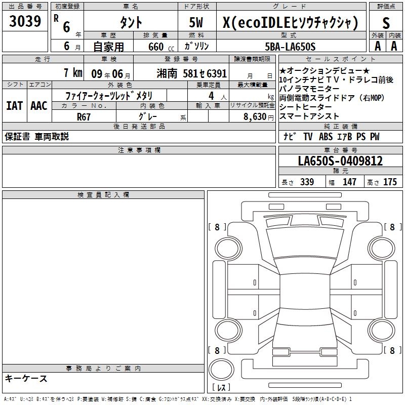 DAIHATSU TANTO X(ECOIDLEHISOU TEA K CAR ) - лот 3039