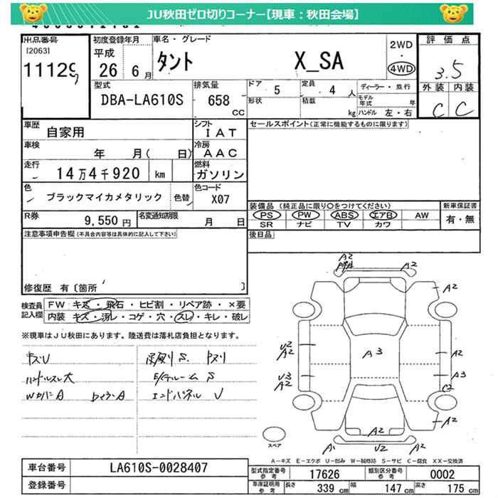 DAIHATSU TANTO 4WD X SA - лот 11129