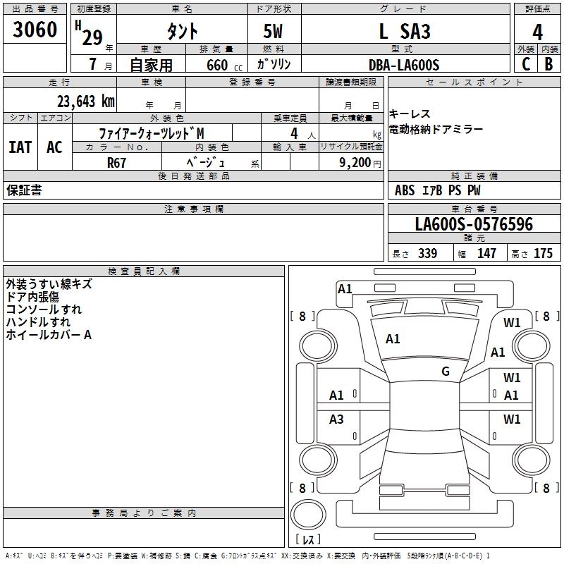 DAIHATSU TANTO L SA3 - лот 3060