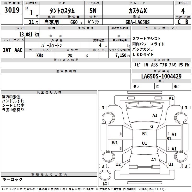DAIHATSU TANTO CUSTOM X - лот 3019