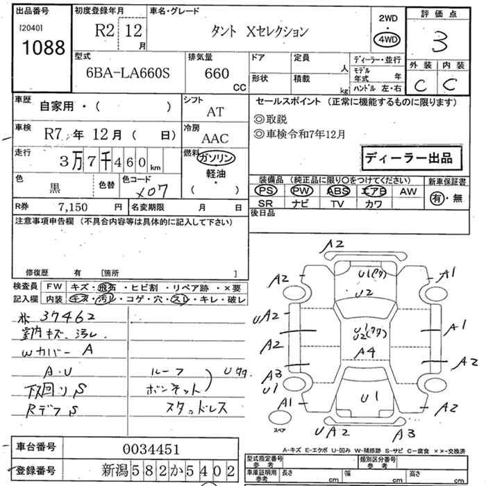 DAIHATSU TANTO 4WD X SELECTION - лот 1088