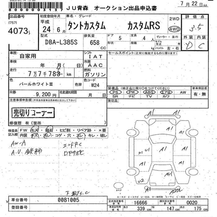 DAIHATSU TANTO 4WD CUSTOM RS - лот 4073
