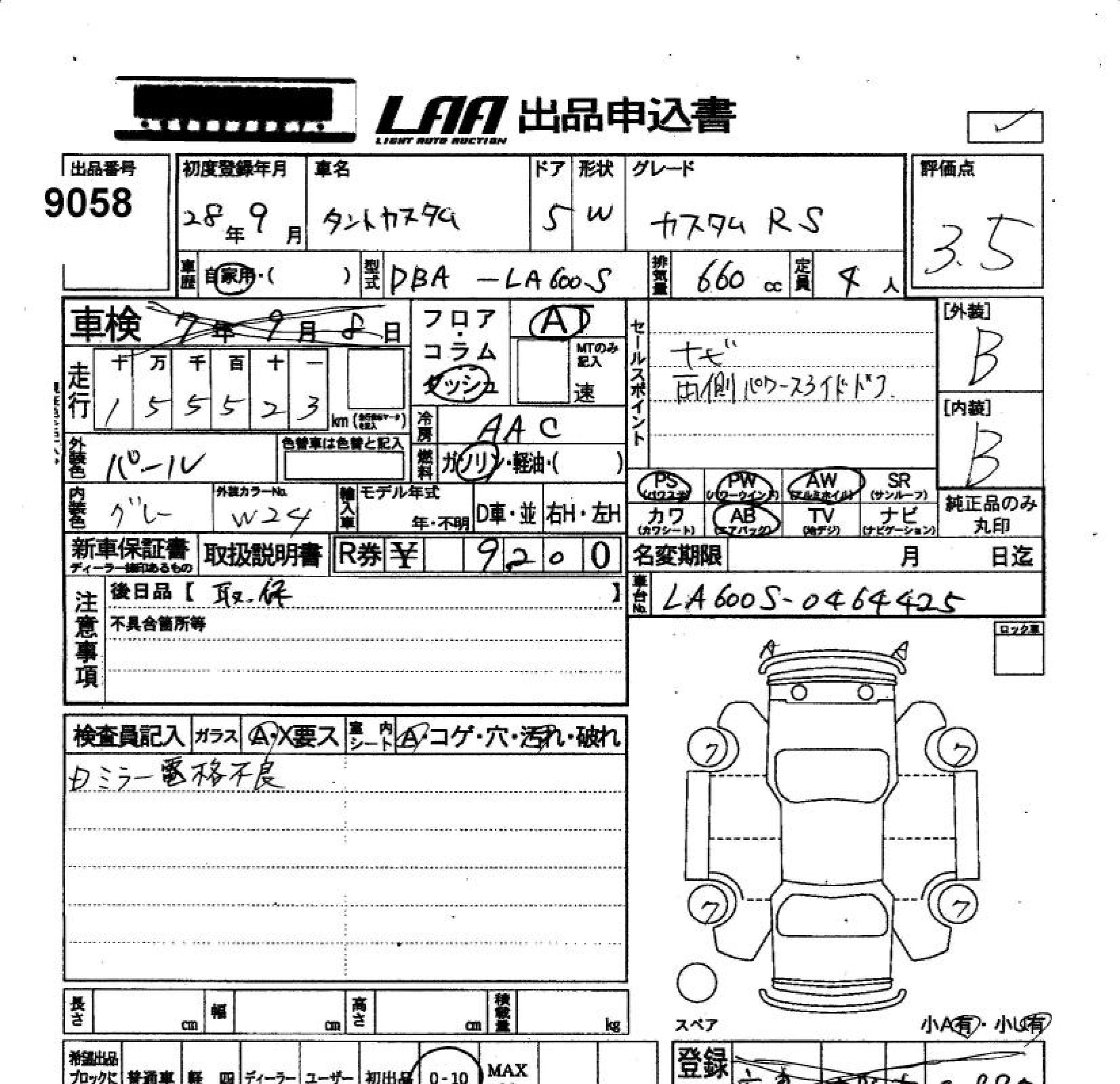 DAIHATSU TANTO CUSTOM RS - лот 9058