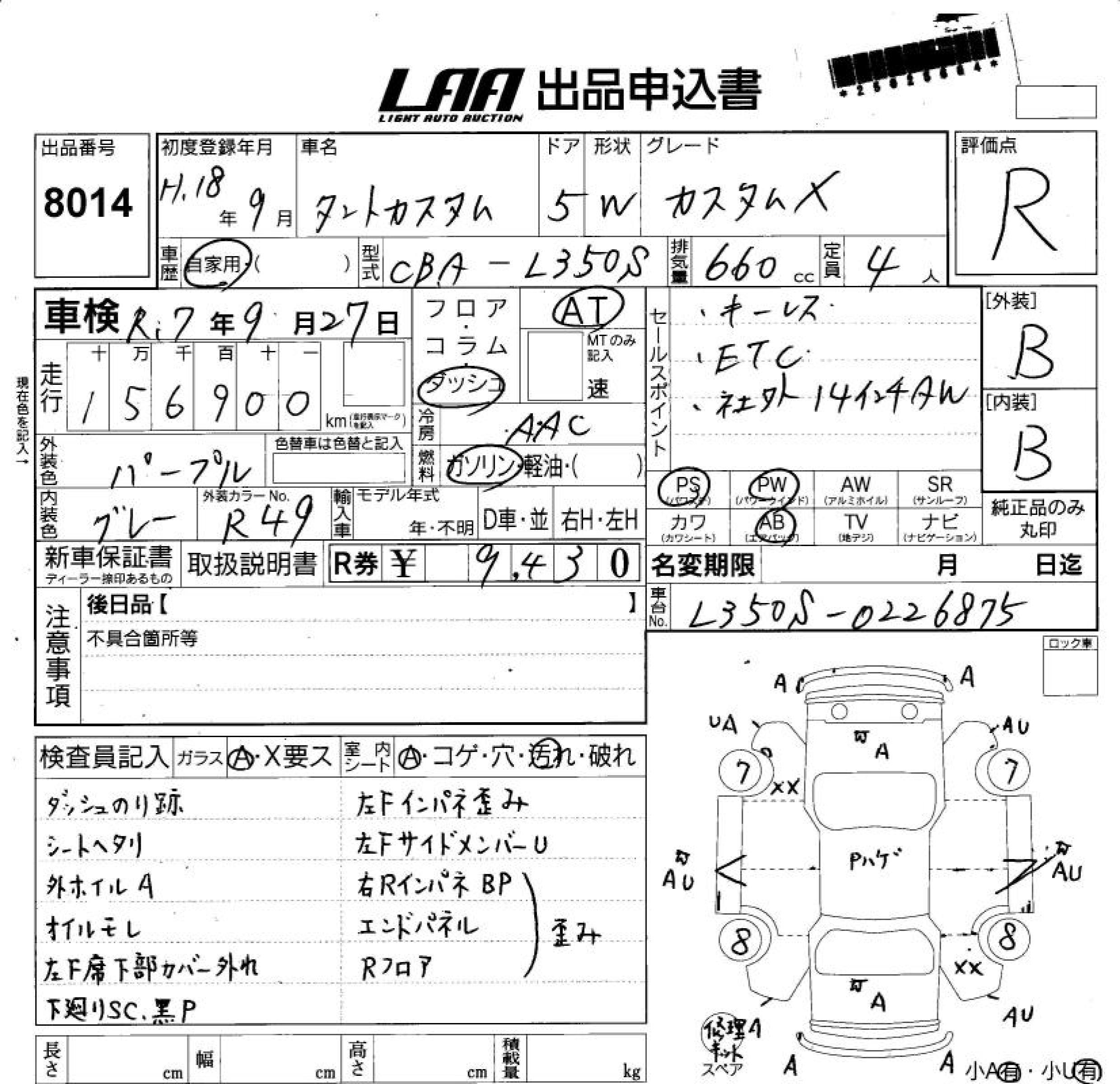 DAIHATSU TANTO CUSTOM X - лот 8014